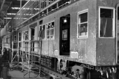 | Keywords: Modifying Nishitetsu 2000.jpg  en A Nishitetsu 2000 rolling stock being modified to add another door ja 3扉改 中の西鉄2000 1989-08-02 own Hahifuheho other versions cc-zero Nishitetsu 2000 series Black and white photographs of trains in Japan 1989 in rail transport in Japan |
