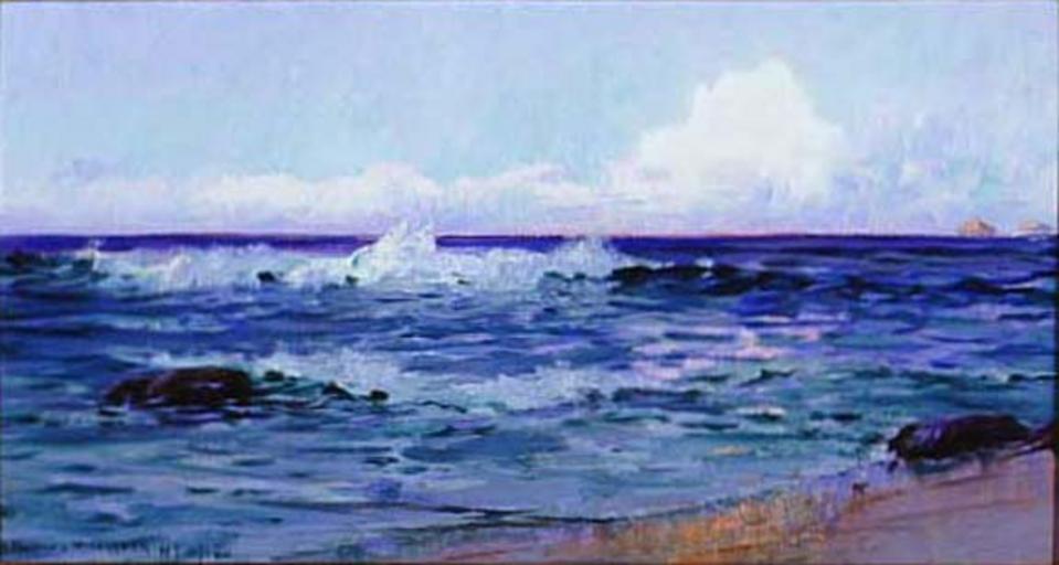 | Keywords: 'Mokulua Islands from Kailua Beach' by D. Howard Hitchcock, 1915.JPG Mokulua Islands from Kailua Beach by D Howard Hitchcock 1915 oil on canvas 14 x 25 inches Frazier Fine Art 1915 D Howard Hitchcock PD-old-auto 1943 Hawaii in paintings by D Howard Hitchcock Na Mokulua Kailua Beach |