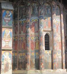 | Keywords: Moldovita murals 2010 23.jpg Moldoviţa Monastery Romania The church is one of the Painted churches of northern Moldavia listed in UNESCO's list of World Heritage sites own photo 14 d'Août 2010 Man vyi Own work all rights released Public domain Moldovita murals |