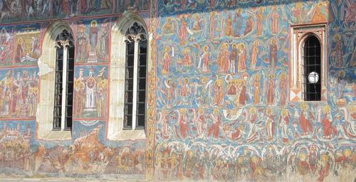 | Keywords: Moldovita murals 2010 32.jpg Moldoviţa Monastery Romania The church is one of the Painted churches of northern Moldavia listed in UNESCO's list of World Heritage sites own photo 14 d'Août 2010 Man vyi Own work all rights released Public domain Moldovita murals |