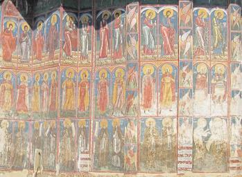 | Keywords: Moldovita murals 2010 35.jpg Moldoviţa Monastery Romania The church is one of the Painted churches of northern Moldavia listed in UNESCO's list of World Heritage sites own photo 14 d'Août 2010 Man vyi Own work all rights released Public domain Moldovita murals |