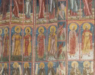 | Keywords: Moldovita murals 2010 36.jpg Moldoviţa Monastery Romania The church is one of the Painted churches of northern Moldavia listed in UNESCO's list of World Heritage sites own photo 14 d'Août 2010 Man vyi Own work all rights released Public domain Moldovita murals |