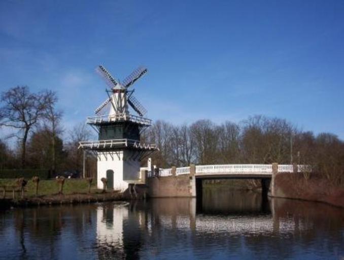 Keywords: Molentje.jpg Windmill at East entrance of Groenendaal park in Heemstede The park is situated at the site of the former home of John Hope whose estate Bosbeek was the first example of a garden in the 'English Style' in the 18th century in the Netherlands He installed the first steam engine for garden use at the site of this windmill in 1781 which had an opposite purpose than most Dutch windmills He wanted to pump water <i>into</i> his estate to grow the unusual plants and trees he had cultivated in the dry sand Dutch windmills are normally used for pumping water <i>out</i> of places In circa 1850 the steam engine was broken down and the copper kettle sold for scrap Photo date January 2007 Source I took the picture from the other side of the Merlenvaart canal Groenendaalse Molen Heemstede Bosbeek Heemstede |