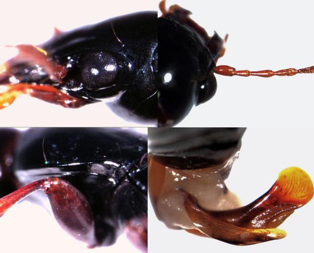Keywords: Molopsida polita male2.jpg en adult male Molopsida polita top left head to show single supraorbital seta; top right antenna to show glabrous 3rd segment; bottom left pronotum to show 2 marginal setae; bottom right aedeagus Mount Maungatautari South cell inside cell transect 1 pitfall trap D Waikato region New Zealand 21 Jan-24 Feb 2010 C H Watts self-photographed S E Thorpe 2010-06-26 Moriomorphina Coleoptera mouthparts Coleoptera aedeagus Coleoptera antennae Coleoptera pronotum Coleoptera of New Zealand Coleoptera specimens Maungatautari |
