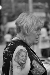 Keywords: blackandwhite black white bw monochrome street streetphotography downtown canada britishcolumbia bc okanagan kelowna woman female lady person tattoo summer blockparty