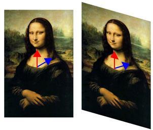 | Keywords: Mona Lisa with eigenvector.png On the left a reproduction of the Mona Lisa with a representation of two vectors superimposed on top of it The red arrow represents a vector in three dimensions pointing directly up on the plane of the painting and the blue arrow represents a unique arbitrary vector on the painting On the right is the result of a shear transformation on the image on the left The blue arrow now represents a different vector while the red one still represents the same vector For this reason the red vector is an eigenvector of the transformation and the blue vector is not The image of the Mona Lisa used in this image is Image Mona_Lisa jpeg Arrows created using w Inkscape transformations made using w GIMP 2006-10-20 J Finkelstein credit line en wikipedia Vb Linear functions Derivative works of Mona Lisa Eigenvalue problems |
