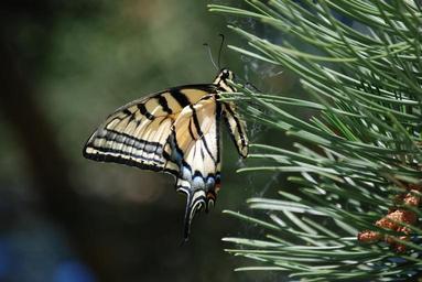 Keywords: monarch butterfly pine needles insect nature closeup
