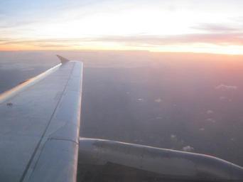Keywords: Monarch Sunrise Wing.jpg en Sunrise outsode of a Monarch A320 G-MPCD bound for Gibraltar Airport own MKY661 2010-10-2010 Cc-zero G-MPCD aircraft Taken with Canon PowerShot A490
