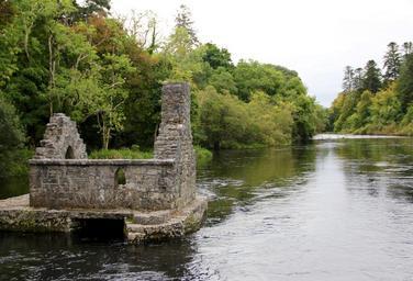 Keywords: monastery river christian ireland irish culture christianity forest park green trees