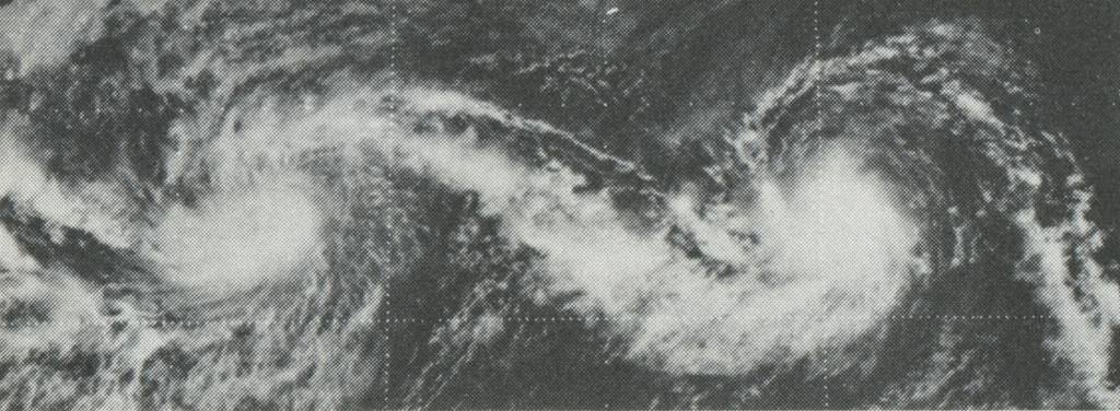 | Keywords: Monicananettesep2919751845UTC.gif en This weather satellite image of Tropical Storms Monica and Nanette was taken on September 29 1975 at 1845 UTC 2013-04-06 11 28 13 Mariners Weather Log May 1976 pg 134 NOAA PD-USGov Uploaded with UploadWizard Satellite pictures of multiple tropical cyclones |