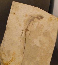 Keywords: Monjurosuchussplendens.jpg en Fossil of Monjurosuchus splendens from Liaoning Province China on display at the San Diego County Fair California USA Own Stickpen 2009-06-29 released to public domain Monjurosuchus Choristodera fossils