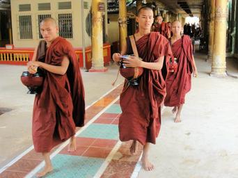 Keywords: monk religion buddhism faithful myanmar burma monks midday meal monastery food lunch bago faith luncheon