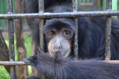 Keywords: monkey ape emcaged cage animal captured indonesia zoo