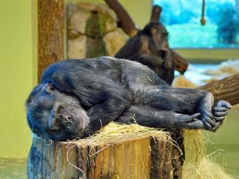 Keywords: monkey ape zoo sleep tired rest mammal chimpanzee