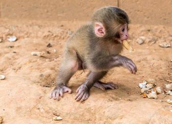 Keywords: monkey baby eating peanut animal wildlife mammal young small cute arashiyama monkey park japan