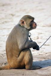 Keywords: monkey brown animal ape wild mammal wildlife primate india domesticated captured leash tied