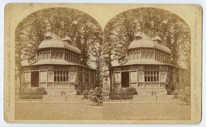 | Keywords: stereographs philadelphia zoological garden zoologicalgarden zoological society zoologicalsociety zoos monkey house monkeyhouse monkeys centennial photographic co. centennialphotographicco View of the Monkey House at the Zoological Garden in Fairmount Park, Philadelphia, 1876. Whimsical trim, shingles and siding adorn the house. Benches face the building and the trees which shade it, while a pathway traverses the lawn in front of the house. Accession number: P.2011.47.1613 View of the Monkey House at the Zoological Garden in Fairmount Park, Philadelphia, 1876. Whimsical trim, shingles and siding adorn the house. Benches face the building and the trees which shade it, while a pathway traverses the lawn in front of the house. Accession number: P.2011.47.1613 |