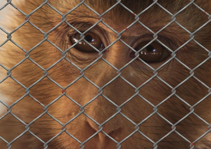 Keywords: monkey sad animal world fence wire mesh fence zoo zoological garden caught freedom prison display dignity captivity animal welfare