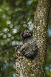 Keywords: monkey tree animal primate in the tree nature wild trunk wood woods greens twigs forest looking environment