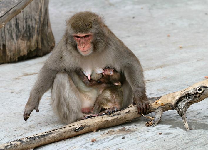 Keywords: monkey young feeding babe mother care monkey with a cub zoo