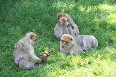 Keywords: monkeys grass prairie famely zoo