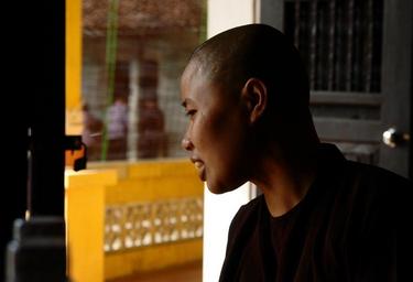 Keywords: monks sour vietnam hanoi portrait female laugh look search homely brown coat conception retreats