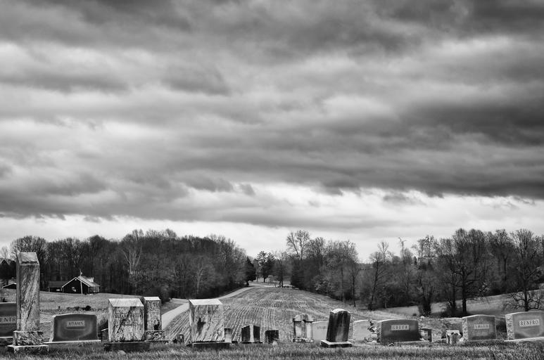 Keywords: monochrome black and white country rural barn field clouds farm landscape countryside outdoor grass meadow farmland tree scenic cemetery graveyard halloween spooky