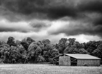 Keywords: monochrome black and white landscape sky rural country barn architecture america scenery