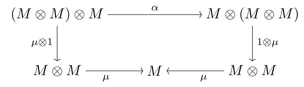 | Keywords: Monoid Associator Coherence.svg Coherence diagram for associator for monoid object in a monoidal category Created as per en meta Help Displaying a formula Commutative diagrams <pre> \documentclass amsart \usepackageall ps dvips xy Loading the XY-Pic package Using postscript driver for smoother curves \usepackage color For invisible frame \begin document \thispagestyle empty No page numbers \SelectTips eu Euler arrowheads tips \setlength \fboxsep 0pt Frame box margin \color white \framebox \color black Frame for margin \xymatrix M \otimes M \otimes M \ard_ \mu \otimes 1 \arrr \alpha M \otimes M \otimes M \ard 1 \otimes \mu \\ M \otimes M \arr_ \mu M M \otimes M \arl \mu end math end frame \end document </pre> 2009-03-30 Tyrrell McAllister Commutative diagrams of binary operations Xy-pic diagrams Images with LaTeX source code |