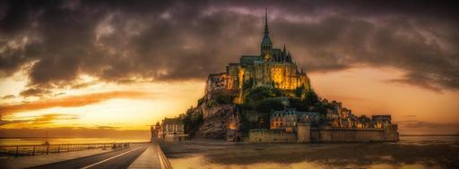 Keywords: mont st michel sunset island church normandy france cathedral tourism travel castle monastery bretagne brittany tourist abbey fortress historic rock famous sky colorful water landmark panorama europe