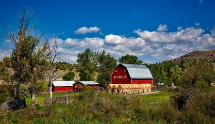 Keywords: montana farm ranch landscape mountains agriculture valley western farmland forest trees woods meadow field nature outdoors countryside rural hdr barn shed panorama