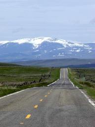 Keywords: montana usa endless straight road snow caped mountains scenery landscape nature