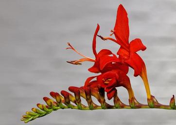 Keywords: montbretia garden montbretia crocosmia × crocosmiiflora schwertliliengewaechs blossom bloom flower red oblong long stems