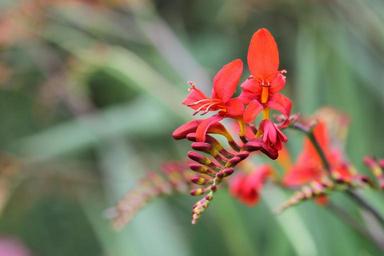 Keywords: montbretia garden montbretia crocosmia × crocosmiiflora schwertliliengewaechs blossom bloom flower red oblong long stems