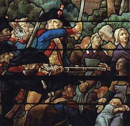| Keywords: Montilliers 1.jpg en Stained glass window in the Church of Saint-Hillaire of Montilliers presenting the massacre of Moulin-de-la-Reine on April 5 1794 when 22 women and children were shot by the french republican army http //www loire-france com/histoire/guerres-vendee/vitraux/galerie/pages/vitrail-001 htm Jean Clamens 1909 PD-old War of Vendée on stained glass windows Colonnes infernales Stained glass windows in Maine-et-Loire Montilliers Jean Clamens 1909 stained glass windows | ||||