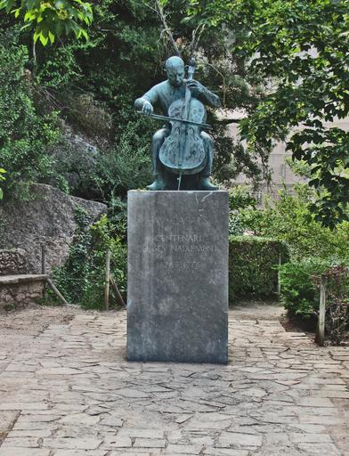 Keywords: montserrat spain sculpture history closeup monument cellist musician bronze music creativity nature art stringed instruments strings