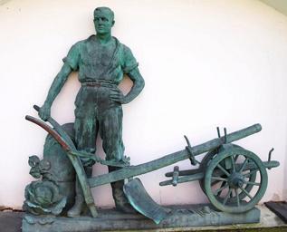 Keywords: monument bauer architecture statue historically artwork czech republic bohemia monastery farmers with agricultural plow before 1945 czech artist