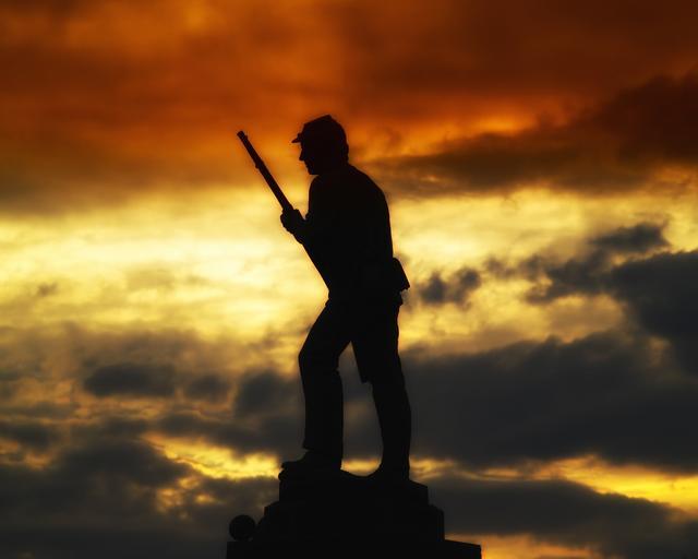 Keywords: monument statue silhouette sunset sky clouds battlefield soldier