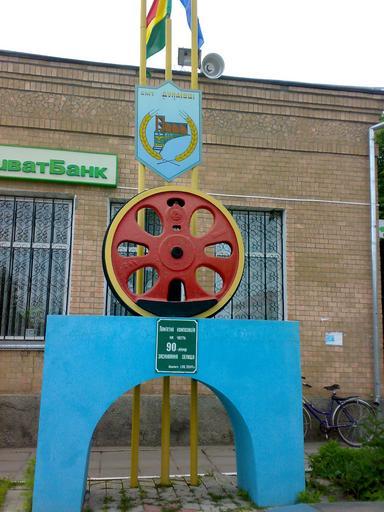 Keywords: Monument to the 90th Anniversary of Dunaivtsi smt.jpg en Dunaivtsi uk Пам'ятна композиція на честь 90- іччя заснування селища uk Дунаївці смт відк ито 01 08 2004 own Pavlo Chemist 2010-05-27 Dunaivtsi