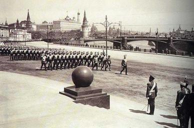 | Keywords: Monument to Alexander III. Moscow 4.jpg Nicolas II lors de la parade au cours de la cérémonie d'inauguration du monument à Alexandre III à Moscou иколай II п инимает па ад во в емя це емонии отк ытия памятника Александ у III в оскве http //www xxc ru/history/alex_3/pam/index htm 1912 Author PD-old Monument to Alexander III Moscow Nicholas II of Russia in 1912 in photographs | ||||