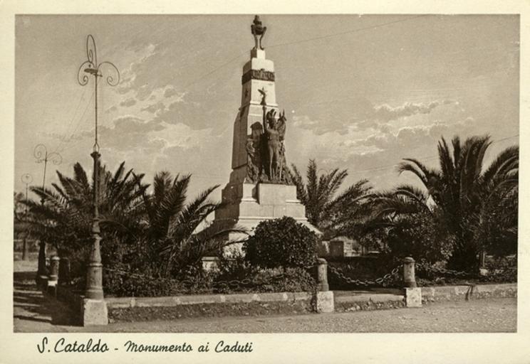 | Keywords: Monumento ai caduti della prima guerra mondiale (città di San Cataldo, provincia Caltanissetta)(1).jpg it Monumento ai caduti della prima guerra mondiale città di San Cataldo provincia Caltanissetta 1 jpg unknown author 1914 public domain Monumento ai caduti della prima guerra mondiale città di San Cataldo provincia Caltanissetta PD-old | ||||