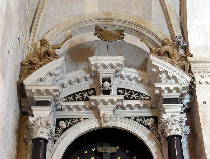 Keywords: monuments sacred architecture church architecture church the cathedral building tourism sacral skull the bones buildings faith gothic monument sacred building bow column religious temple interior of the church the art of religion house of prayer sculpture object croatia trogir tour places of interest stone head stone