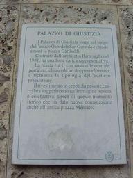 | Keywords: Monza-palazzo-di-Giustizia-targa.jpg it MB Monza targa turistica del palazzo di Giustizia own Albertomos 2009-10-23 nessuna ImageNote 1 190 218 865 846 1224 1632 2 PALAZZO DI GIUSTIZIA Il Palazzo di Giustizia sorge sul luogo dell ™antico Ospedale San Gerardo e chiude a nord la piazza Garibaldi costruito dall ™architetto Bartesaghi nel 1931 ha una forte carica rappresentativa La pianta è a U con un cortile centrale porticato chiuso da un doppio colonnato e richiama la tipologia dell'edificio preesistente Il rivestimento in ceppo la pesante cancellata suggeriscono un ™immagine severa e celebrativa tipica di questo momento storico che ha dato nuova connotazione anche all ™antica piazza Mercato ImageNoteEnd 1 Tourist signs in Monza Palazzo di Giustizia Monza 00 Piazza Garibaldi Monza 00 Monza in the 1930s |