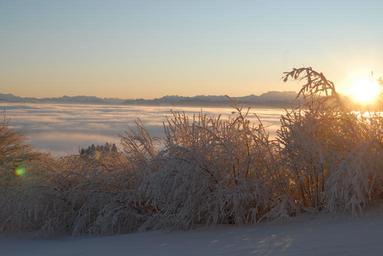 Keywords: mood winter sun snow bush back light