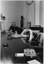 | Keywords: Moods, President Lyndon B. Johnson listens to tape sent by Captain Charles Robb from Vietnam - NARA - 192617.tif Scope and content Location White House Cabinet Room Depicted President Lyndon B Johnson General notes 192617 Local identifier President 1963-1969 Johnson White House Photograph Office 1963 - 1969 NARA-Author Kightlinger Jack E 1932-2009 Photographer 8451338 <br /> Lyndon Baines Johnson Library NLLBJ 2313 Red River Street Austin TX 78705-5702 1968-07-31 Record group Collection LBJ-WHPO White House Photo Office Collection 11/22/1963 - 01/20/1969 Record group ARC 1153 Johnson White House Photographs compiled 11/22/1963 - 01/20/1969 Series ARC 192480 File unit File unit ARC Variant control numbers NAIL Control Number NLJ-WHPO-A-VN137<br /> Other Identifier B1274-16 yes Other versions NARA-cooperation PD-USGov Charles Robb Lyndon B Johnson in 1968 0731 Photographs by Jack E Kightlinger |