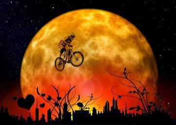 | Keywords: moon bike mountain bike clothing silhouettes city bmx sport jump person man cool amusement and entertainment amusement exhilaration benefit from joy kurzweil merriment fun sight for sore eyes delight happiness frohsinn laugh joy of life pleasure happy courage humor spectacular |