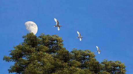 Keywords: moon blue sky sky blue nature day light illuminated trees plant vegetation garden forest birds seagulls environment preservation clear sky field rural serra