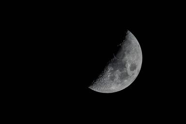 Keywords: moon crescent lunar craters surface telescope magnification half satellite astronomy science night sky space universe night sky celestial exploration