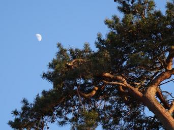Keywords: moon day moon tree dusk blue sky evening conifer sky blue outdoor nature