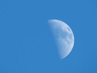 Keywords: moon daylight half moon blue sky